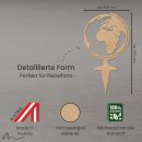 Cake Topper aus Holz in Form einer Weltkugel. Im Format 10,5 x 14,5 cm (BXH), inkl. Spieß ca. 10,5 x 19,5 cm. Der Spieß des Cake Toppers ist ca. 5 cm lang. Wunderbar für alle reiselustigen Brautpaare und perfekt passend zu unserer Designserie "Reisepass Globus".