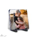 Dieser Fotoaufsteller ist aus echtem Stein. Deine Fotos und dein Text werden direkt auf den Stein gedruckt. Dazu ist die Steinplatte vorne weiß beschichtet, damit die Farben der Fotos gut zur Geltung kommen. Deine Bilder wirken auf der Steinplatte hochwertig und durch die Ränder des Steins etwas rustikal. Die rauen Ränder des Fotosteins sind bei jedem Stein anders. Teilweise wird ein wenig auf diesen Rand hinaus gedruckt, so sieht das Bild wie aus Stein gehauen aus.